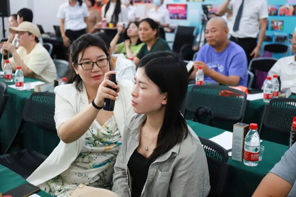 青春常伴清洗液采用臺灣海底深層水,蘊含90多種礦物質與微量元素,礦物質含量比例接近人體體液,運用量子科技,呈離子狀態,易于吸收。家人們把清洗液噴灑在臉上,“噴起來挺舒服的”、“眼睛沒那么干澀了”、“感覺臉上緊致了不少”的討論聲此起彼伏。在產品實驗環節里,張哲總監帶大家體驗了一場生動的量子隧穿實驗,隔著門對著裝有醬油和白酒的杯子噴了清洗液后,讓大家品嘗和未噴清洗液的醬油和白酒的差別,“醬油更鮮了”、“白酒沒那么嗆了”,一個簡單的量子隧穿實驗讓大家大開眼界,充滿了對清洗液的好奇。
